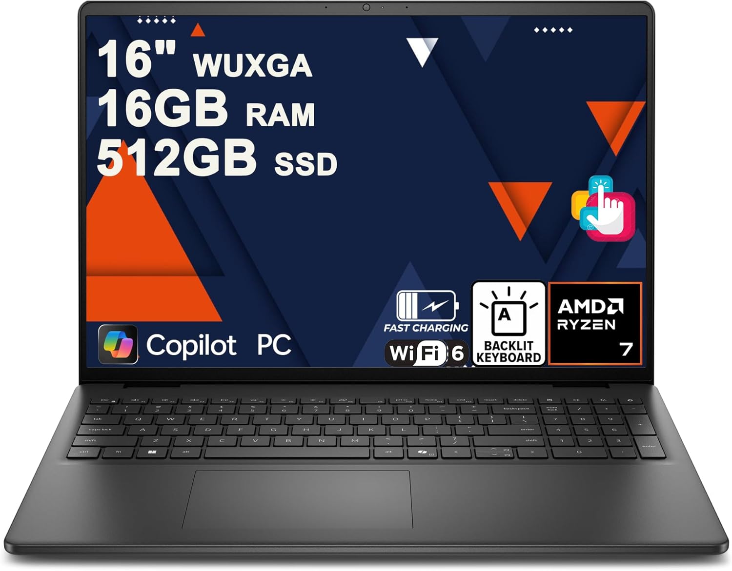 Dell 16 Laptop 16″ WUXGA Touchscreen AMD 8-core Ryzen 7 250 16GB RAM 512GB SSD Backlit ExpressCharge Wi-Fi6 for Creator Designer Business Professional Work Win11